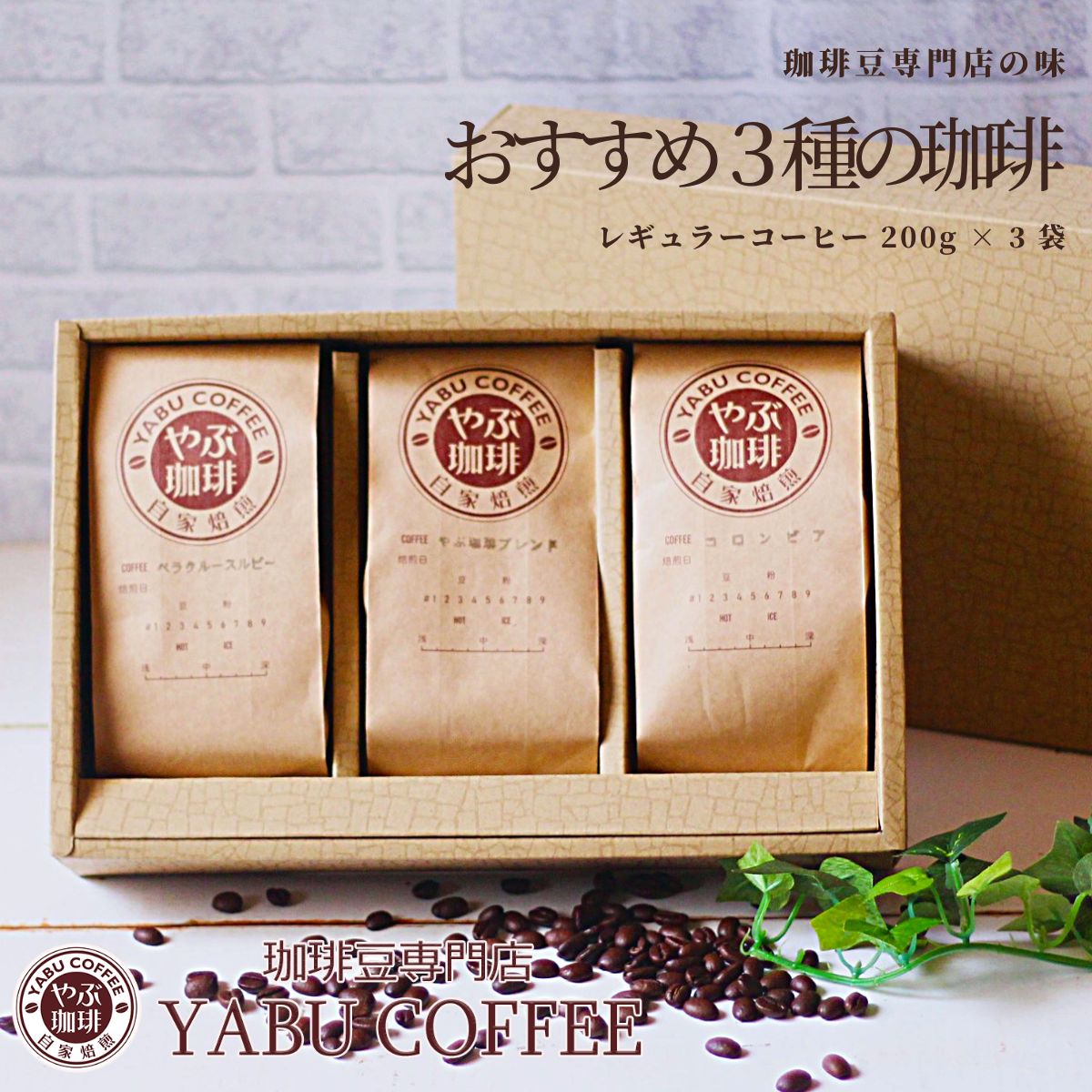 コーヒー豆 おすすめ3種 ギフト 200gx3袋 やぶ珈琲ブレンド スプレモ サントス