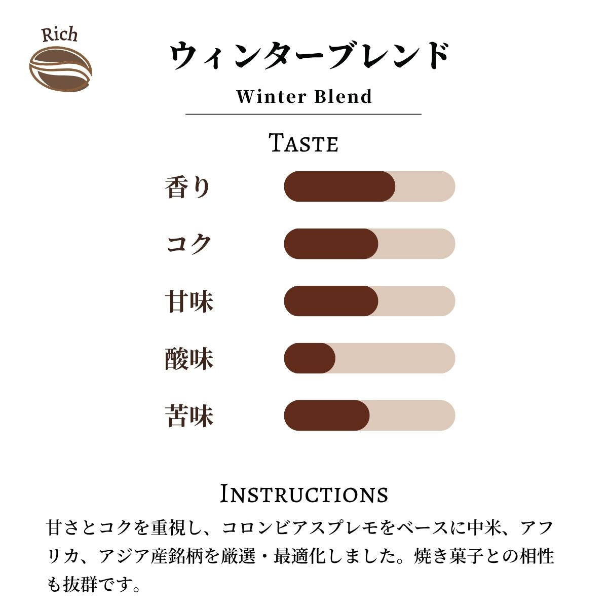 焼き菓子との相性も抜群で、冬のほっこりしたひとときをお楽しみいただくことを目指したブレンドです。