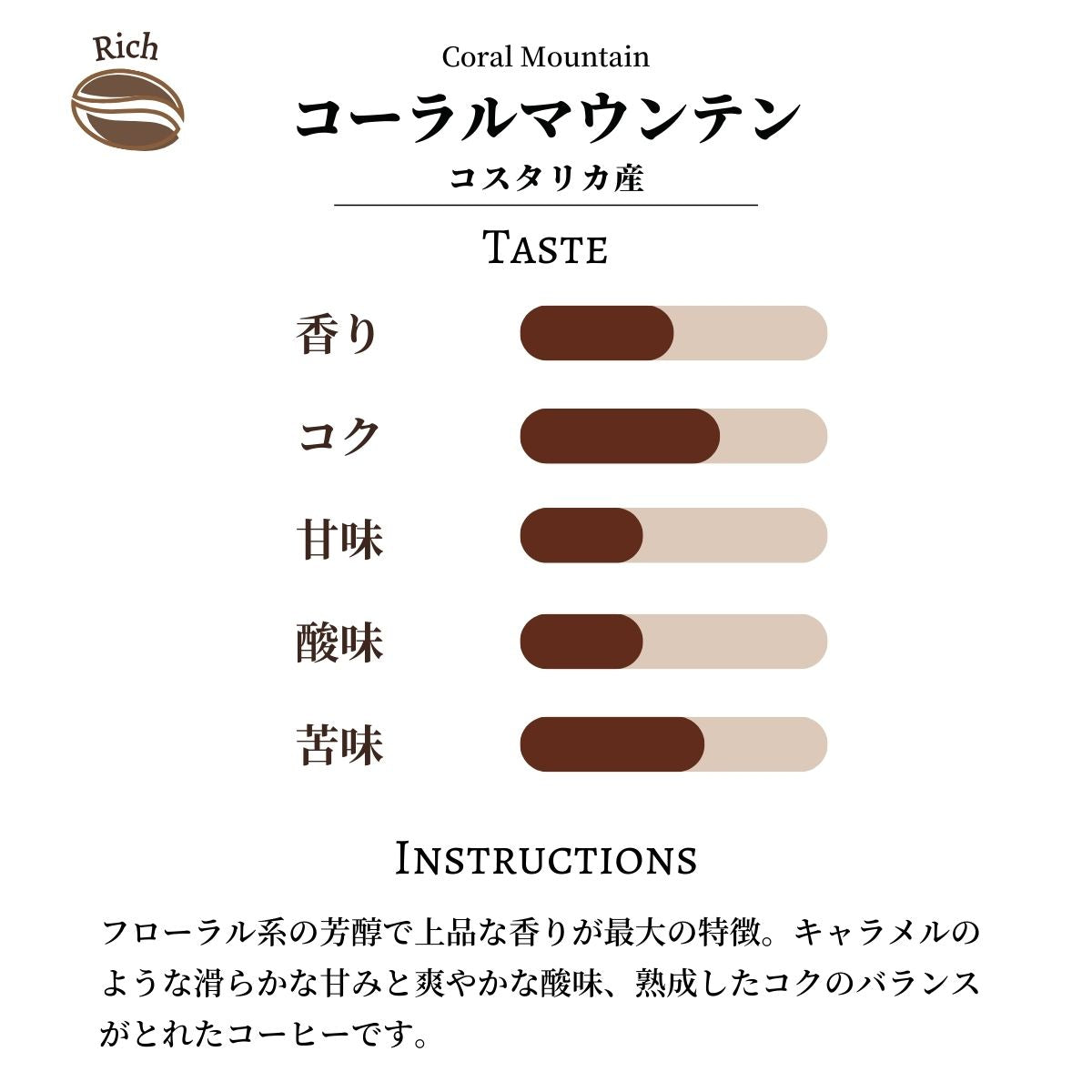 キャラメルのような滑らかな甘みと爽やかな酸味、熟成したコクのバランスがとれたコーヒーです。